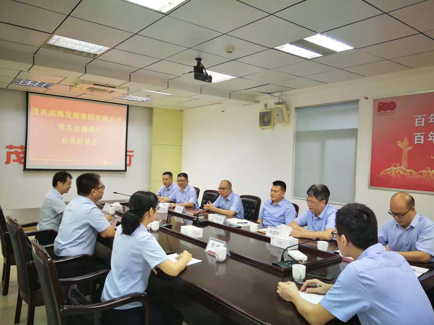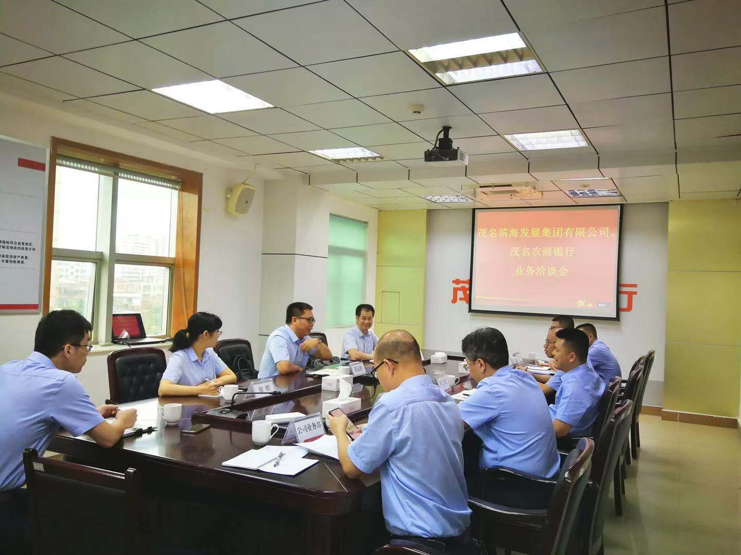 7月19日上午,茂名濱海發(fā)展集團黨委書記、董事長黃遠(yuǎn)維帶隊拜訪茂名農(nóng)商銀行,雙方就項目融資、產(chǎn)業(yè)合作等有關(guān)事宜進行洽談,并達成合作意向。茂名農(nóng)商銀行行長葉志斌,副行長鐘劍釗、朱海龍;茂名濱海發(fā)展集團黨委委員、副總裁李滔等參加座談會。