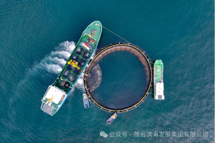 海洋牧場(chǎng)一期項(xiàng)目于2024年4月建成,布設(shè)60口深水網(wǎng)箱,配套陸基辦公基地、工作船艇及冷鏈設(shè)施,總投資約7250萬元,年產(chǎn)量2400噸,年產(chǎn)值近5500萬元,實(shí)現(xiàn)了茂名深遠(yuǎn)海養(yǎng)殖"從0到1"的突破。